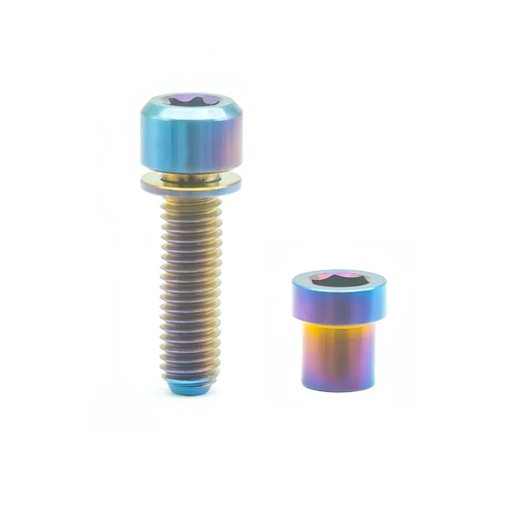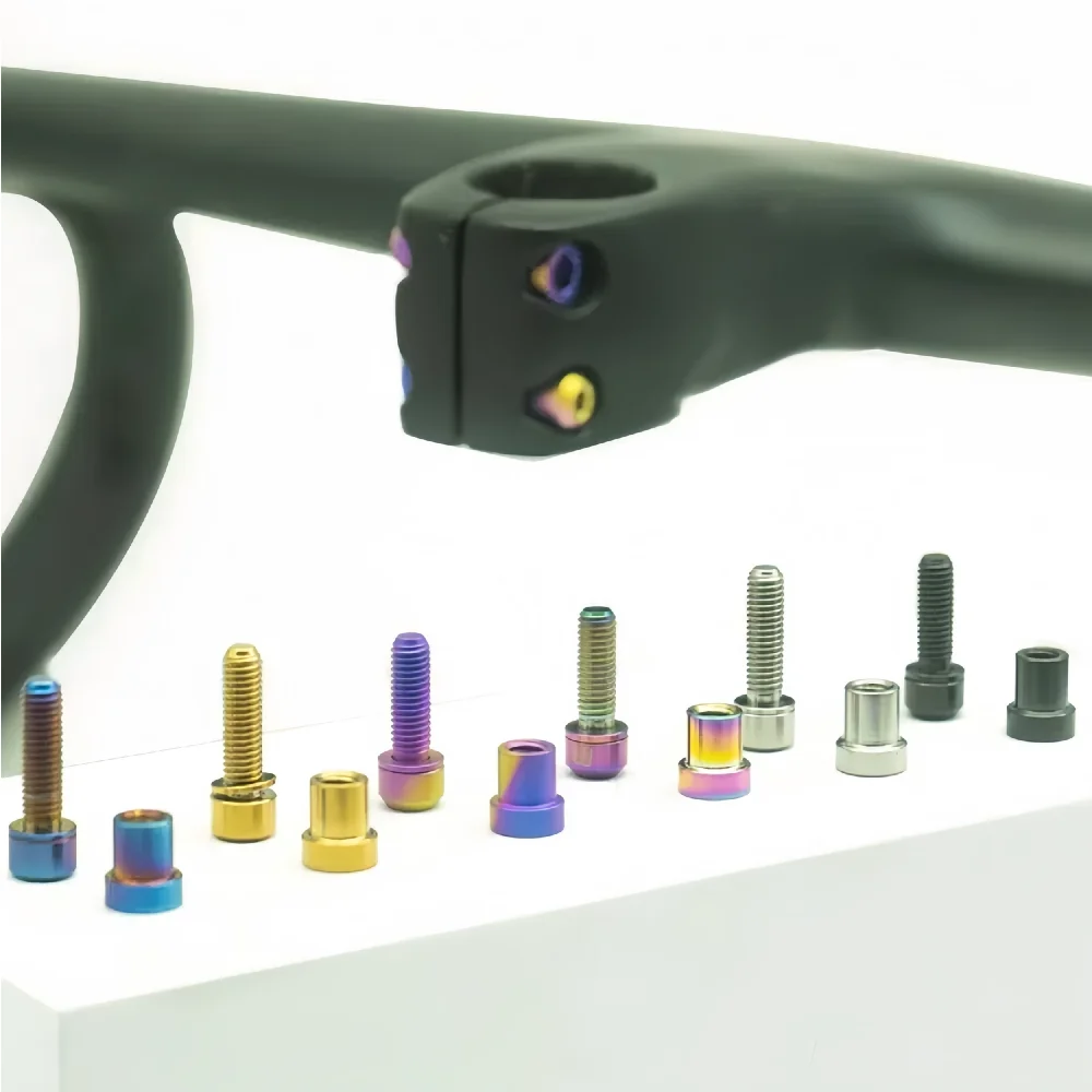 Crafted from 6AL/4V(TC4) titanium alloy, Ti Stem Bolts M5x18mm are Grade 5, ensuring robustness and resistance to rust and deformation, promising an extended service life.