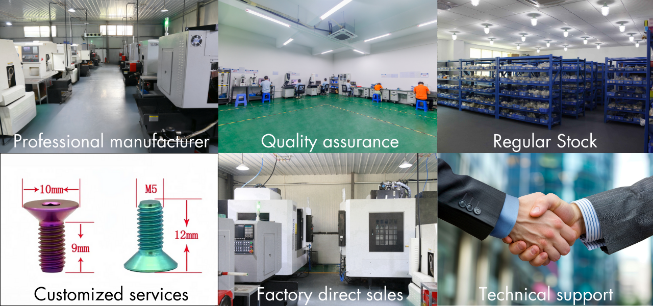 As a professional titanium bolt manufacturer, we focus on every detail. From precision CNC machining to rigorous quality inspection, each screw is carefully crafted to ensure dimensional accuracy and quality stability. At the same time, we provide direct factory sales services to customers, not only to ensure that the product is cost-effective, but also to provide customized services according to the special needs of customers, including personalized options such as size, color, laser logo and package.