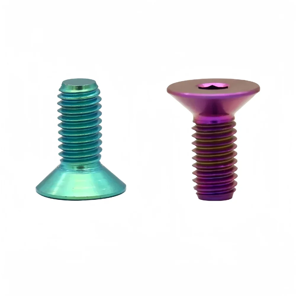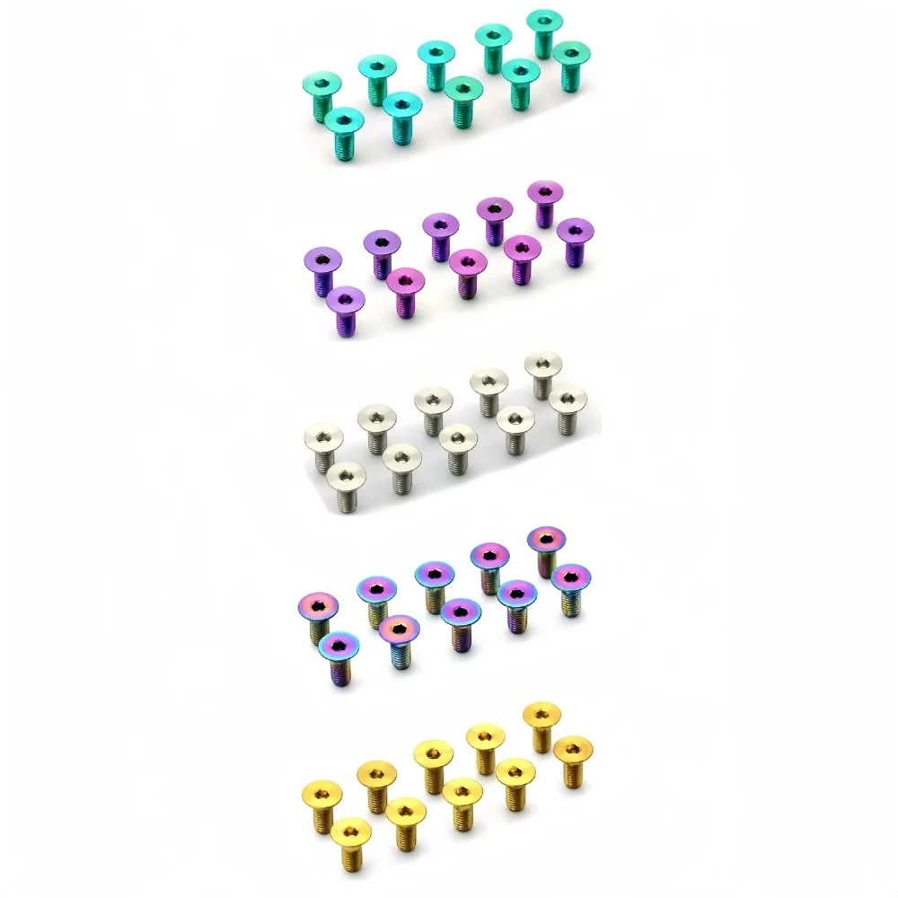 Our titanium bottle cage bolts are a high-performance accessory designed for cycling enthusiasts, combining light weight, strength and beauty. Made of aviation-grade Gr5 titanium alloy, this screw not only offers excellent corrosion resistance and strength, but also enhances functionality and installation stability through its flat head hexagonal design.